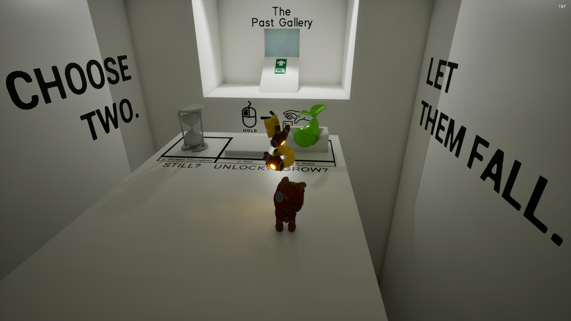 The experience unfolds in a series of minimal white spaces. You encounter objects from an earlier moment, decide what to keep or discard, and later walk through a future environment quietly reshaped by those choices. Sometimes a key you kept opens a path. Sometimes a seed you abandoned grows into something unexpected. Sometimes time itself becomes unstable. The entire experience lasts only a few minutes, but is designed to leave a small afterimage of reflection.
